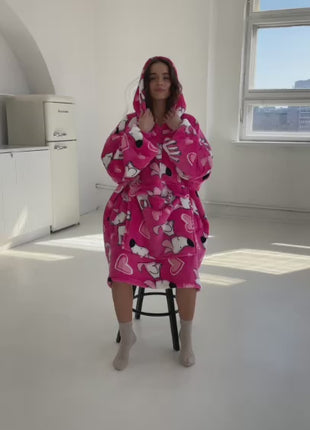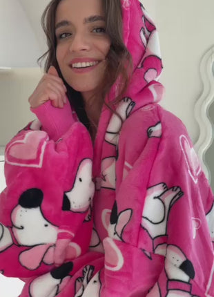 Its vibrant pink colour with adorable white puppy prints and little hearts makes it impossible not to smile when you see it. This hoodie blanket is full of positive energy, bringing warmth and good vibes into every day.